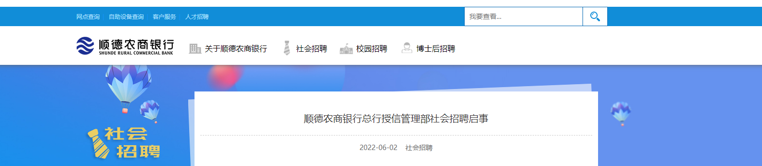 請(qǐng)登錄智聯(lián)招聘/前程無(wú)憂/獵聘網(wǎng)等招聘網(wǎng)站搜索“順德農(nóng)商銀行”投遞簡(jiǎn)歷。