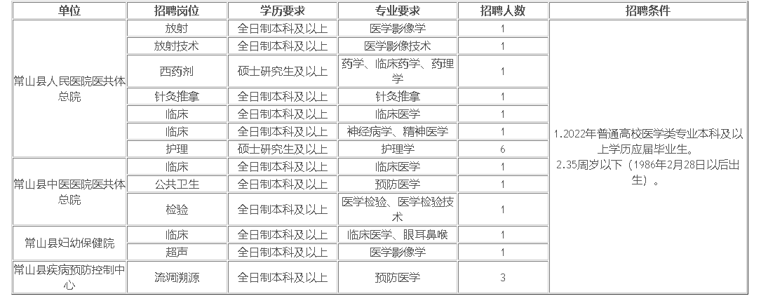 根據(jù)衛(wèi)生健康事業(yè)發(fā)展需要,浙江省常山縣衛(wèi)生健康局下屬事業(yè)單位提前招聘衛(wèi)生專業(yè)人才若干名,有關(guān)事項(xiàng)公告如下: