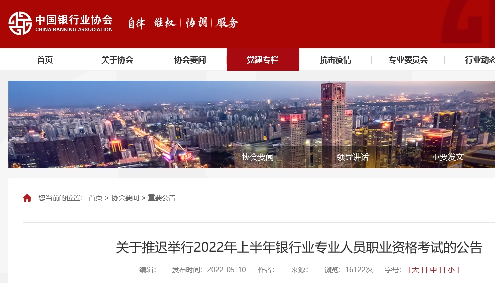 小編根據(jù)中國(guó)銀行業(yè)協(xié)會(huì)發(fā)布“關(guān)于推遲舉行2022年上半年銀行業(yè)專業(yè)人員職業(yè)資格考試的公告”得知,2022年銀行從業(yè)資格考試時(shí)間延期,相關(guān)考生成績(jī)合格的科目延長(zhǎng)至下一次考試,現(xiàn)將相關(guān)事項(xiàng)公告如下: