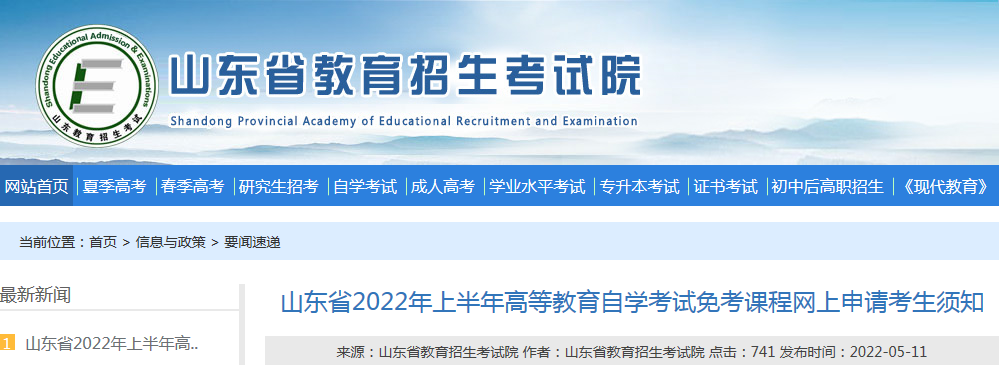 自考頻道從山東省教育招生考試院了解到,山東省2022上半年自學考試免考課程網上申請考生須知已發(fā)布,詳情如下: