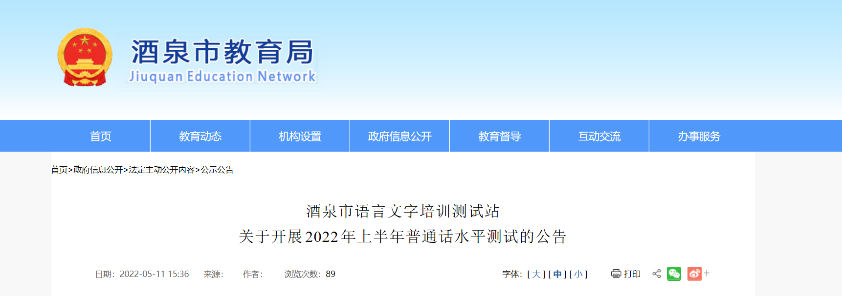 點(diǎn)擊進(jìn)入>>>2022年上半年甘肅酒泉普通話考試報(bào)名入口