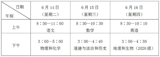 2022年江蘇連云港中考時間為6月14日-6月16日,具體考試時間如下: