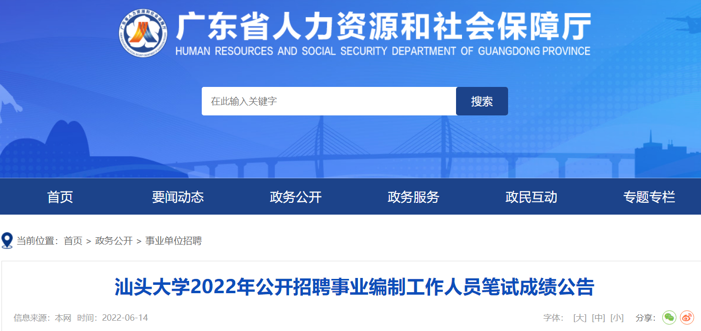 2022年廣東汕頭大學(xué)公開招聘事業(yè)編制工作人員筆試成績公告已發(fā)布,現(xiàn)將原文發(fā)布如下: