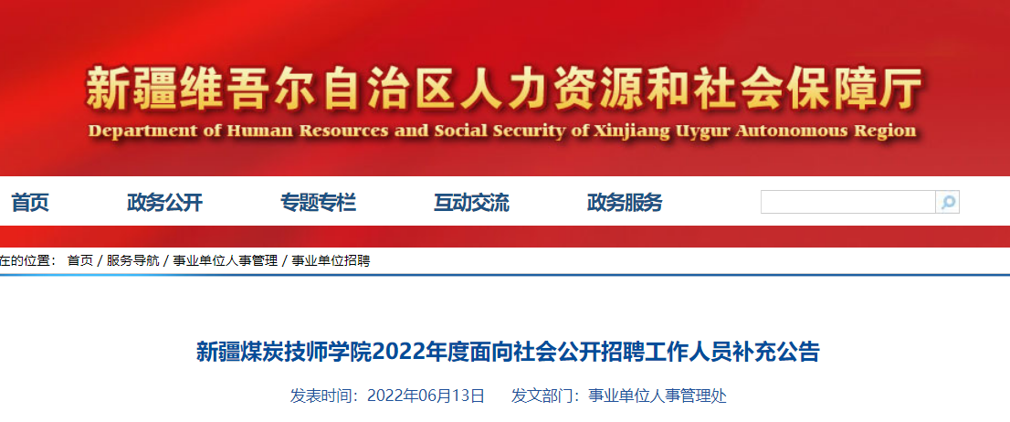二、其他事項仍然按照《新疆煤炭技師學(xué)院2022年度面向社會公開招聘事業(yè)單位工作人員的公告》(http://rst.xinjiang.gov.cn)執(zhí)行。