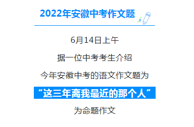 6月14日上午,據(jù)一位中考考生介紹,今年安徽中考的語文作文題為“這三年離我最近的那個人”,為命題作文。