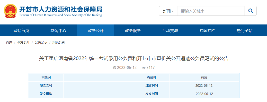 2022年河南省統(tǒng)一考試錄用公務(wù)員和開封市直機(jī)關(guān)公開遴選公務(wù)員筆試重啟公告已公布,為了方便廣大考生的查閱,下面為您詳細(xì)介紹一下本次公務(wù)員筆試重啟的具體事宜,希望廣大考生及時關(guān)注,如有相關(guān)疑問,請關(guān)注公務(wù)員頻道為您實時做出的更新。