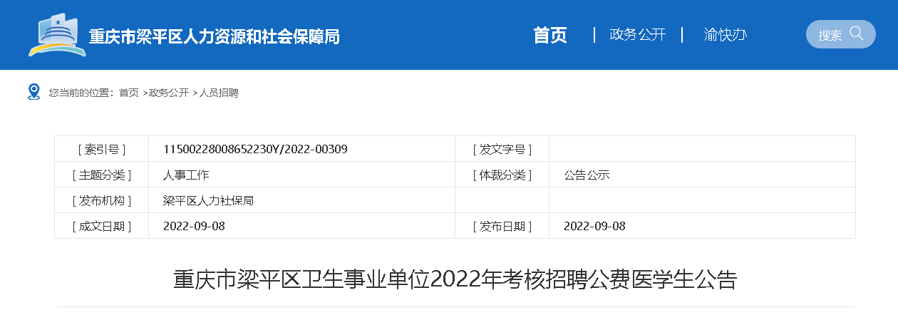2022重慶梁平區(qū)衛(wèi)生事業(yè)單位考核招聘公費(fèi)醫(yī)學(xué)生7人,報(bào)名時間:2022年9月16日(上午8:30—12:00,下午14:30—17:30)截止,現(xiàn)將招聘公告原文發(fā)布如下: