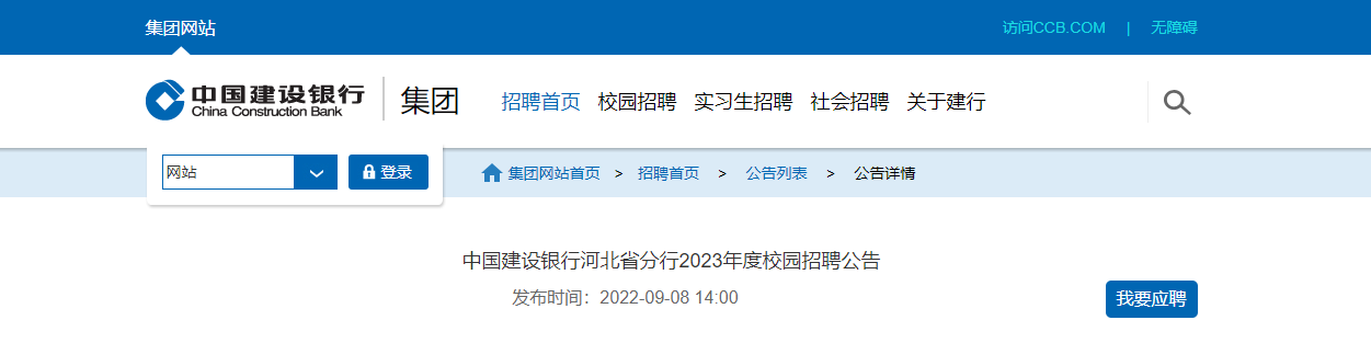 2023年度中國建設(shè)銀行河北省分行校園招聘1000人,報名時間:2022年10月12日24點截止,現(xiàn)將招聘公告發(fā)布如下: