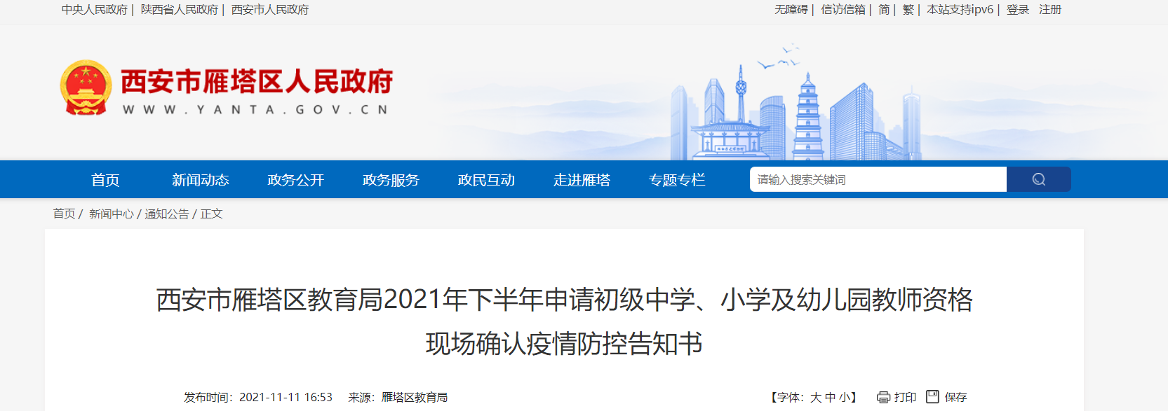 從西安雁塔區(qū)人民政府獲悉,2021年下半年陜西西安雁塔區(qū)申請初級中學、小學及幼兒園教師資格現(xiàn)場確認疫情防控告知書已公布,請相關(guān)人員仔細閱讀,具體詳情如下: