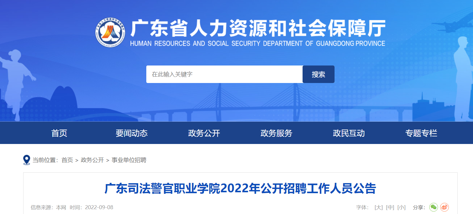 面試人員名單于筆試結(jié)束后20個(gè)工作日內(nèi)在廣東省人力資源和社會(huì)保障廳和廣東司法警官職業(yè)學(xué)院網(wǎng)站公布。