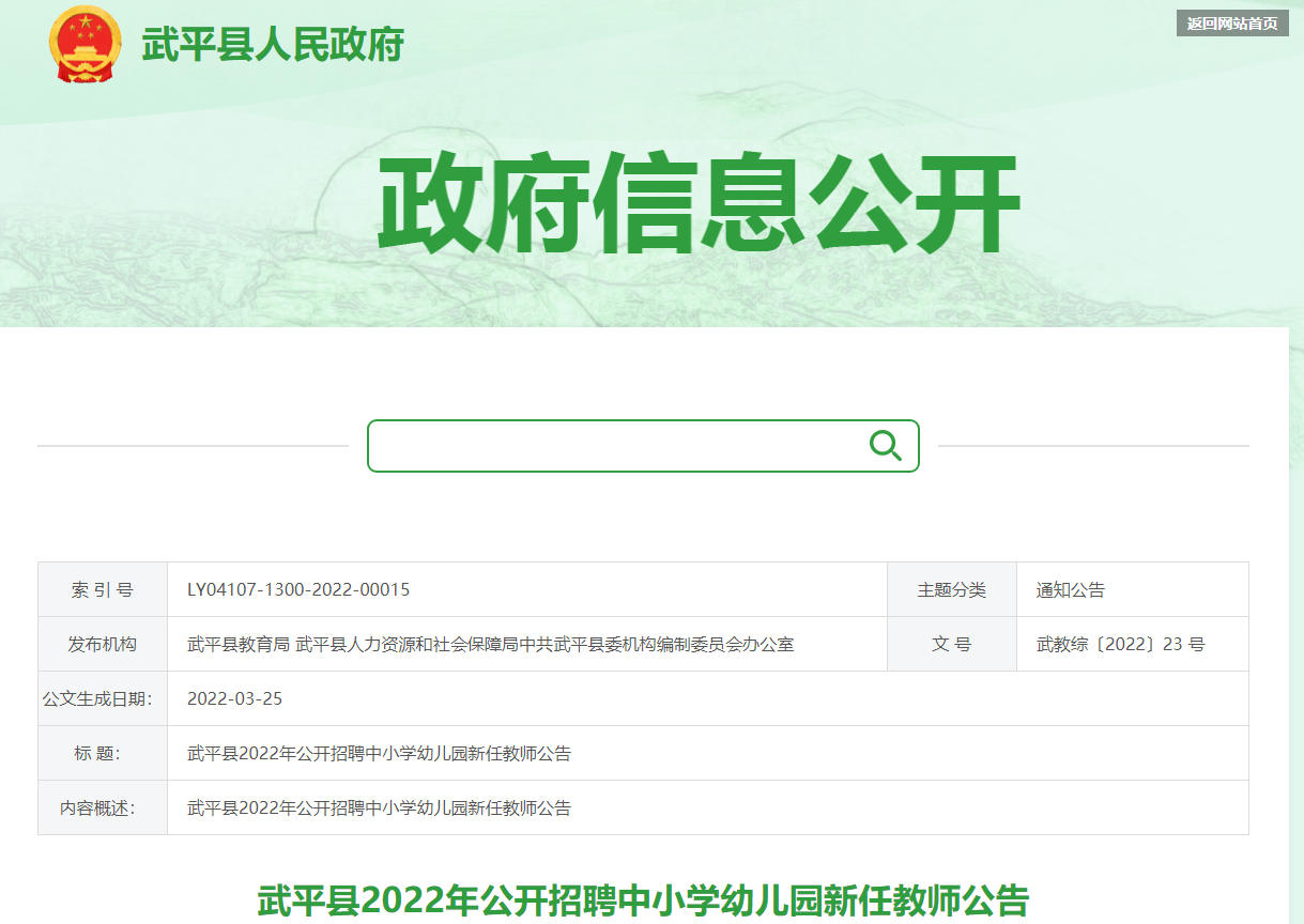 2022福建龍巖武平縣招聘中小學(xué)幼兒園新任教師公告已發(fā)布,報(bào)名時(shí)間:2022年3月25日8:00至3月31日17:30。現(xiàn)將招聘公告原文發(fā)布如下: