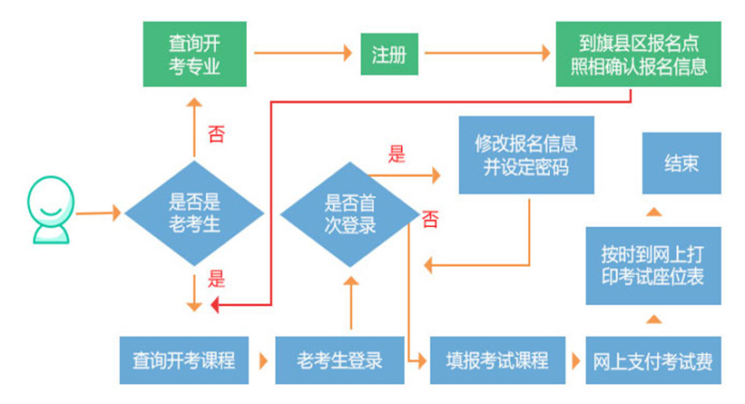 首次報(bào)名參加自學(xué)考試的考生,須在報(bào)名報(bào)考時(shí)間段內(nèi)首先進(jìn)行網(wǎng)上注冊(cè),然后到所在旗縣區(qū)報(bào)名點(diǎn)進(jìn)行信息確認(rèn),信息確認(rèn)后才能網(wǎng)上選擇自己要參加考試的課程并繳費(fèi)。如未能在規(guī)定報(bào)名時(shí)間內(nèi)繳費(fèi),視為放棄本次報(bào)考申請(qǐng)。網(wǎng)上報(bào)考繳費(fèi),必須由考生本人完成,不接受集體支付。成功報(bào)名報(bào)考的考生,于考前一周自行在網(wǎng)上打印《準(zhǔn)考證》,持《準(zhǔn)考證》與《身份證》參加考試。