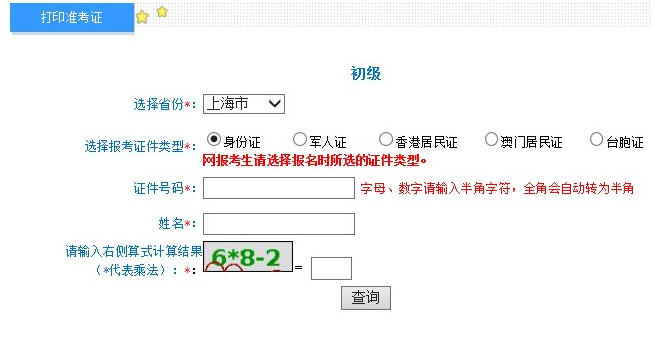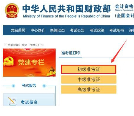 三、進(jìn)入準(zhǔn)考證打印頁(yè)面,選擇【初級(jí)準(zhǔn)考證】