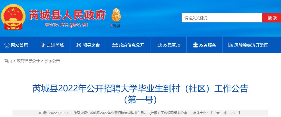 本次公開招聘大學(xué)畢業(yè)生到村(社區(qū))工作的相關(guān)信息查詢網(wǎng)址為芮城縣人民政府網(wǎng)(www.rcx.gov.cn)。
