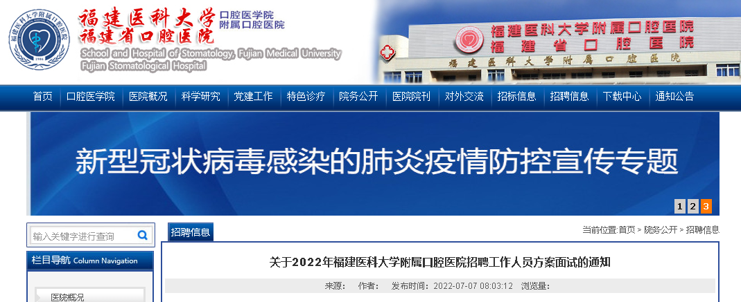 2022福建醫(yī)科大學(xué)附屬口腔醫(yī)院招聘面試通知已出,面試時(shí)間:2022年7月11日下午14:30開(kāi)始,現(xiàn)將招聘通知原文發(fā)布如下: