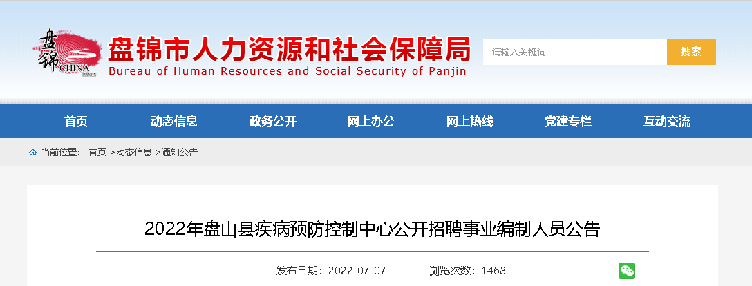 2022年遼寧省盤(pán)錦市盤(pán)山縣疾病預(yù)防控制中心公開(kāi)招聘事業(yè)編制人員16人,報(bào)名時(shí)間:2022年7月18日至7月22日(上午9:00—11:00,下午2:00—5:00),現(xiàn)將招聘公告原文發(fā)布如下: