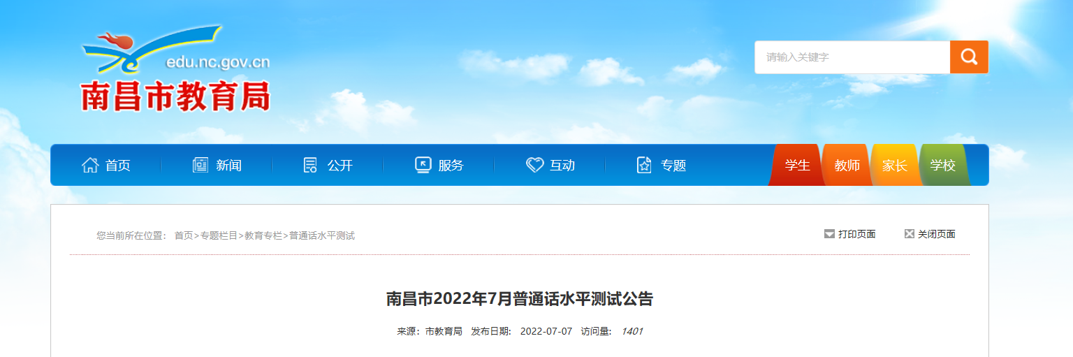 從南昌市教育局發(fā)布的《 2022年7月江西南昌普通話水平測試公告 》得知,2022年7月江西南昌普通話繳費(fèi)時間及費(fèi)用已公布,繳費(fèi)時間為7月15日-7月17日,具體詳情如下: