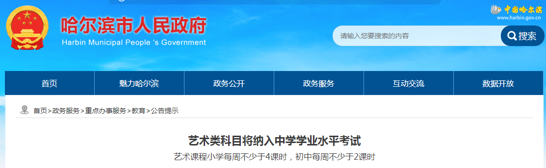 從哈爾濱市人民政府網(wǎng)了解到,黑龍江哈爾濱藝術(shù)類科目將納入中學(xué)學(xué)業(yè)水平考試,詳細(xì)內(nèi)容如下: