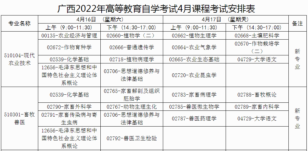 自學考試頻道從廣西招生考試院公布的《廣西2022年高等教育自學考試統(tǒng)考課程安排事項的通知》了解到,廣西欽州2022年4月自考時間已公布,安排在2022年4月16日至17日期間。具體如下: