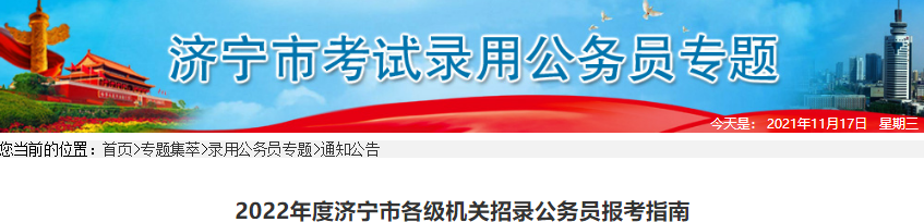 《2022年度濟(jì)寧市各級(jí)機(jī)關(guān)招錄公務(wù)員報(bào)考指南》僅適用于2022年濟(jì)寧市各級(jí)機(jī)關(guān)公務(wù)員招錄。