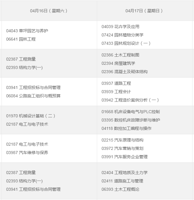 點擊查看完整版>>2022年4月高等教育自學(xué)考試課程安排表