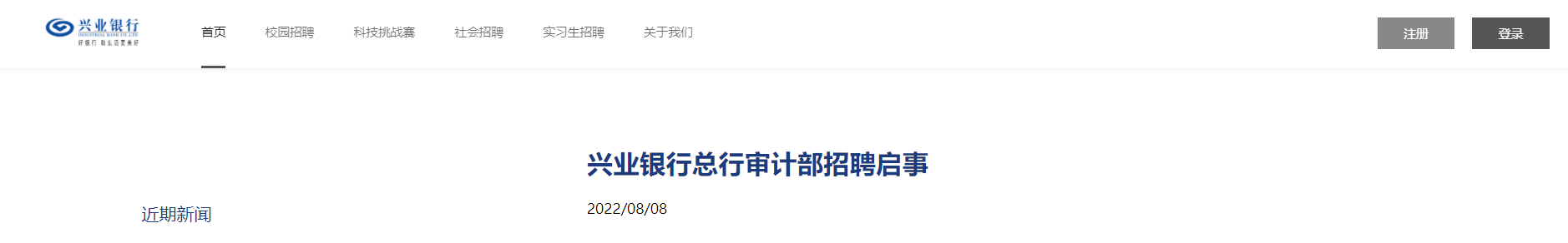 2022北京、上海等地興業(yè)銀行總行審計部招聘若干人,招聘時間:2022年9月30日截止,現(xiàn)將招聘公告發(fā)布如下: