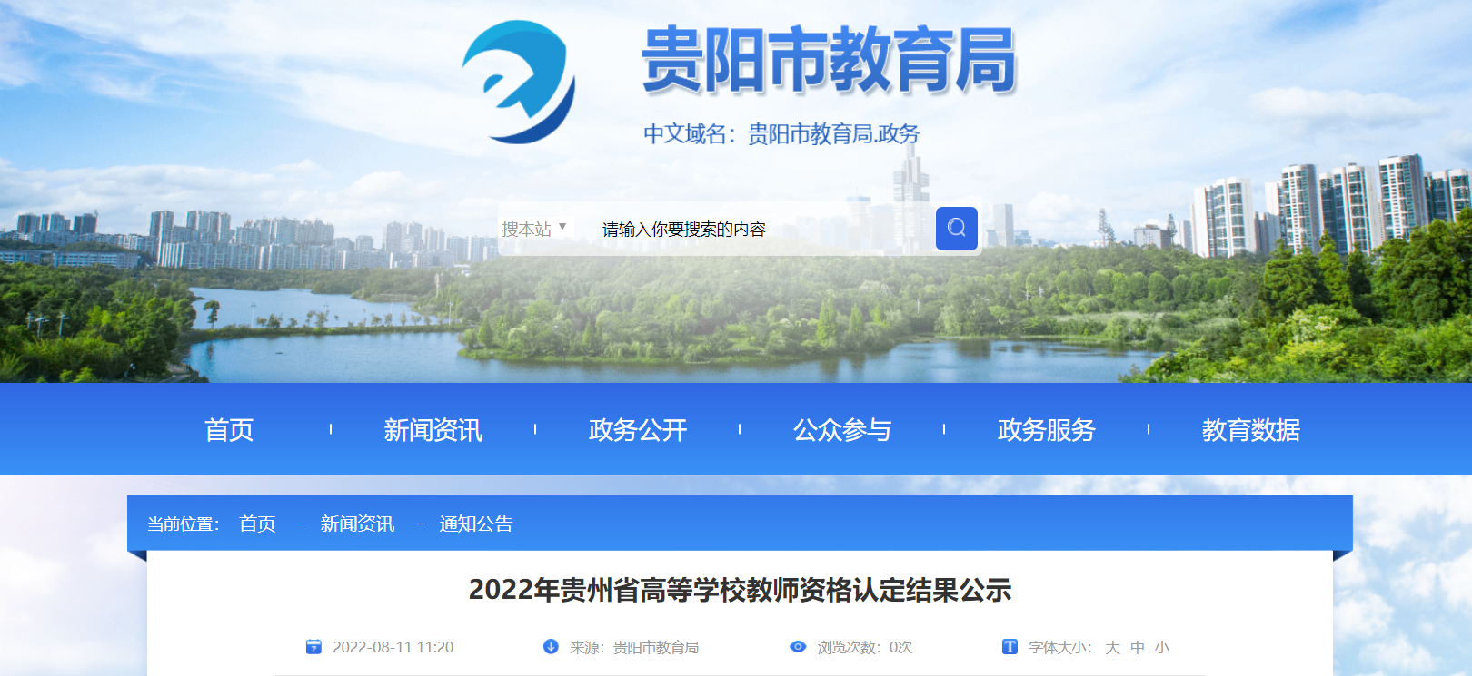 從貴陽市教育局獲悉,2022年貴州高等學(xué)校教師資格認(rèn)定結(jié)果已公布,請相關(guān)人員仔細(xì)閱讀,具體詳情如下: