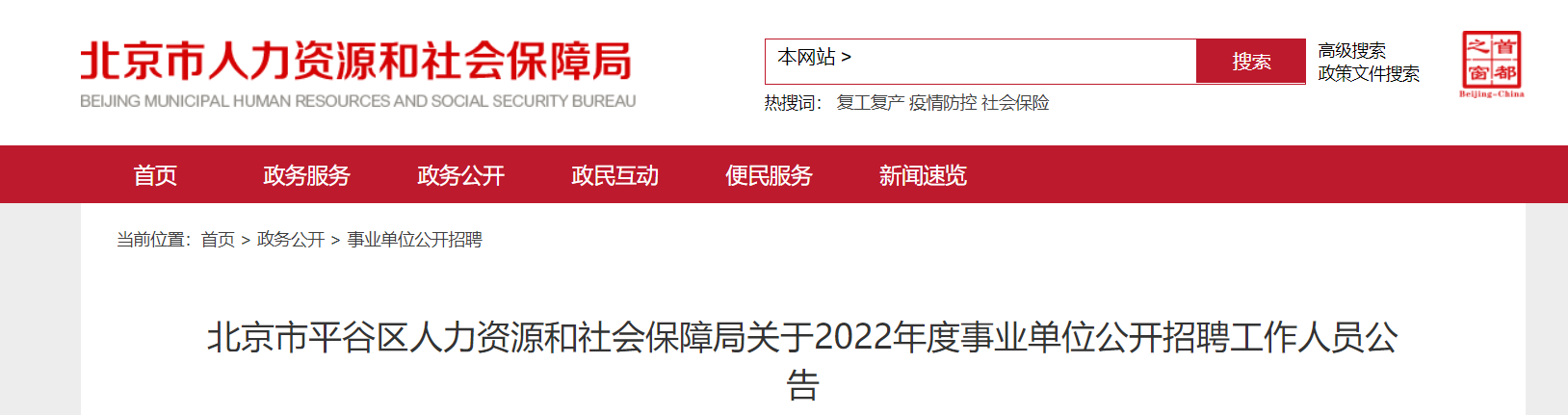 5、視疫情發(fā)展,如遇國(guó)家或本市出臺(tái)相關(guān)政策,本次招聘工作將適時(shí)予以調(diào)整,相應(yīng)補(bǔ)充公告將在平谷區(qū)政府門戶網(wǎng)站(http://www.bjpg.gov.cn)公布,請(qǐng)考生隨時(shí)關(guān)注。