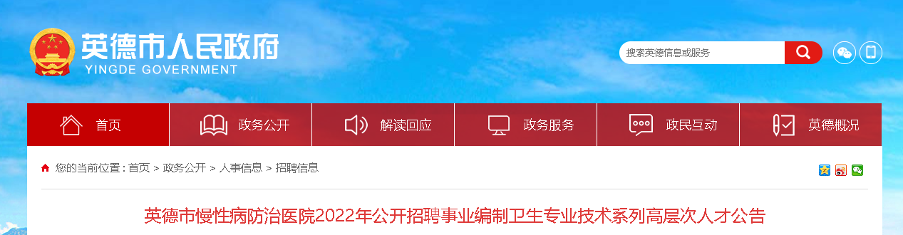 2022廣東清遠(yuǎn)英德市慢性病防治醫(yī)院招聘事業(yè)編制衛(wèi)生專業(yè)技術(shù)系列高層次人才1人,報(bào)名時(shí)間:2022年4月18日至4月20日上午8:30—12:00,下午14:30—17:30,現(xiàn)將招聘公告原文發(fā)布如下: