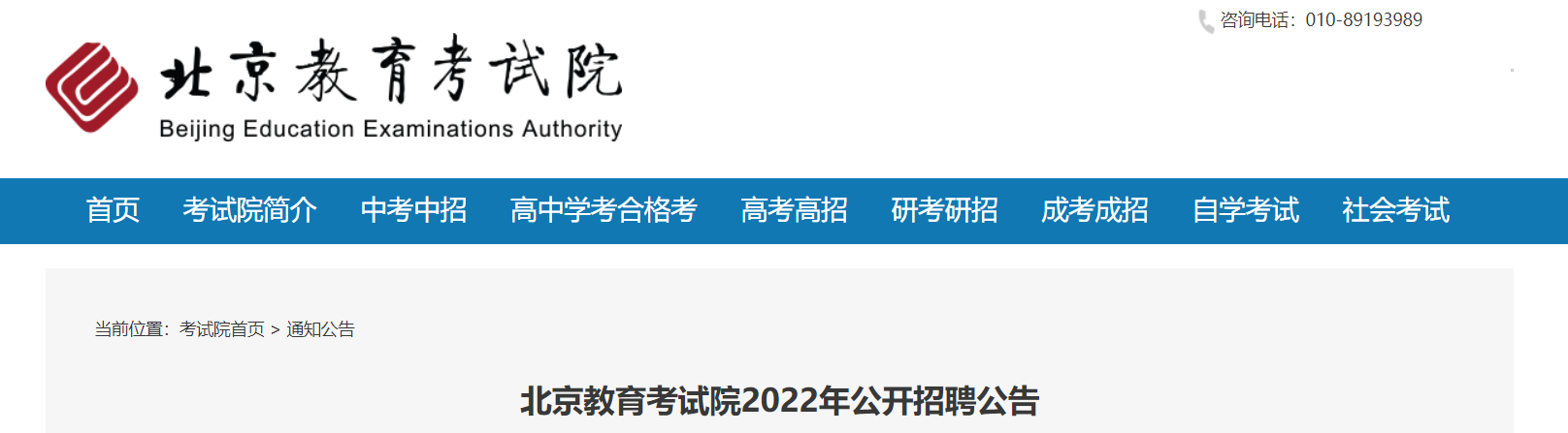 2022年北京教育考試院招聘公告已發(fā)布。根據(jù)北京市人力資源和社會保障局《關(guān)于印發(fā)〈北京市事業(yè)單位公開招聘工作人員實施辦法〉的通知》(京人社專技發(fā)〔2010〕102號)精神和我院崗位設(shè)置情況,結(jié)合崗位需求,現(xiàn)就我院2022年公開招聘工作人員公告如下。為您整理了招聘條件和報名流程,供您參考。