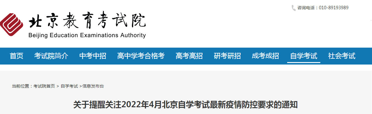 自考頻道從北京教育考試院了解到,2022年4月北京自學(xué)考試新疫情防控要求的通知已發(fā)布,詳情如下: