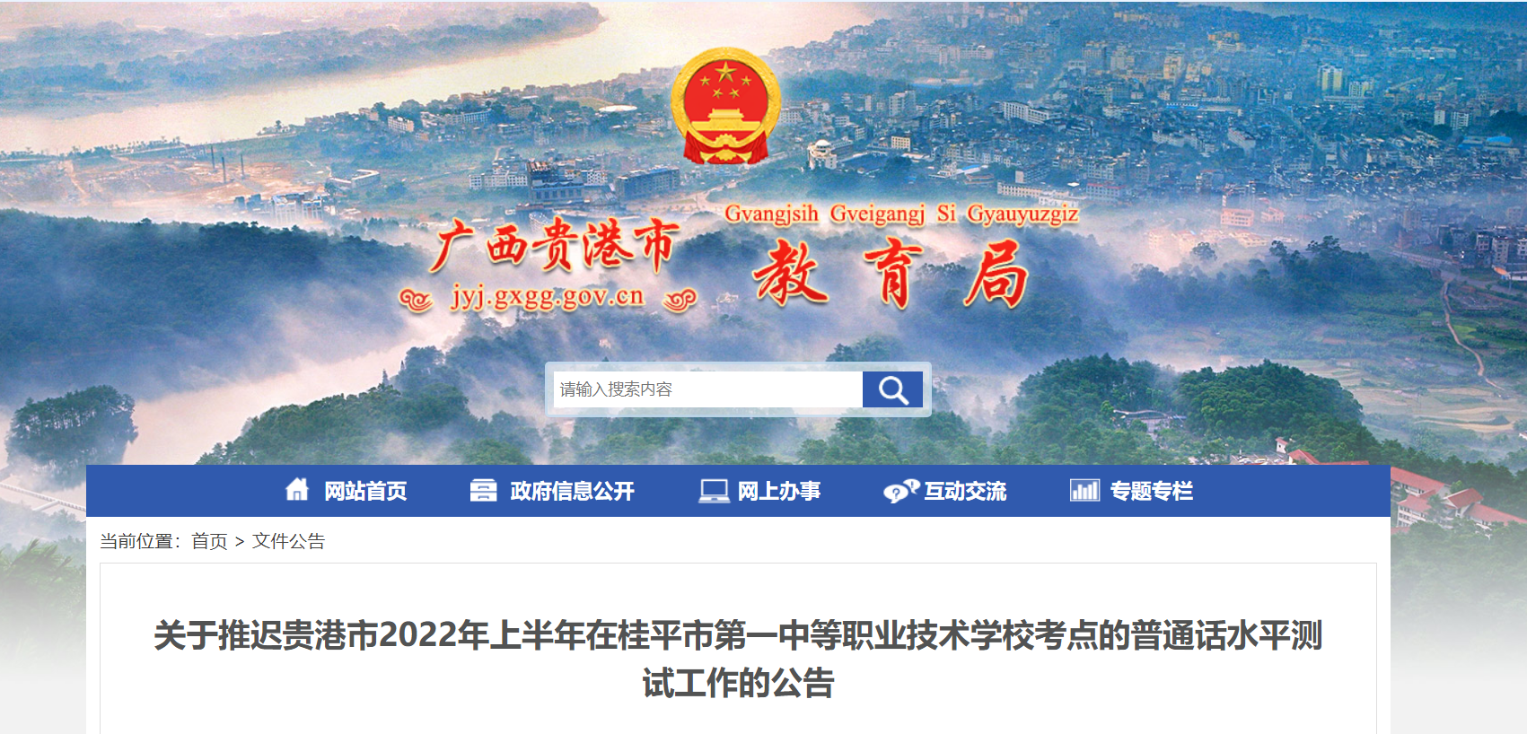 從廣西貴港市教育局獲悉,推遲廣西貴港2022年上半年在桂平市第一中等職業(yè)技術(shù)學校考點的普通話水平測試工作的公告已公布,請相關人員仔細閱讀,具體詳情如下: