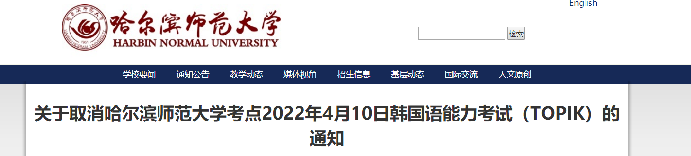 從哈爾濱師范大學獲悉,取消黑龍江哈爾濱師范大學2022年4月10日韓國語能力考試(IK)的通知已公布,請相關人員仔細閱讀,具體詳情如下:
