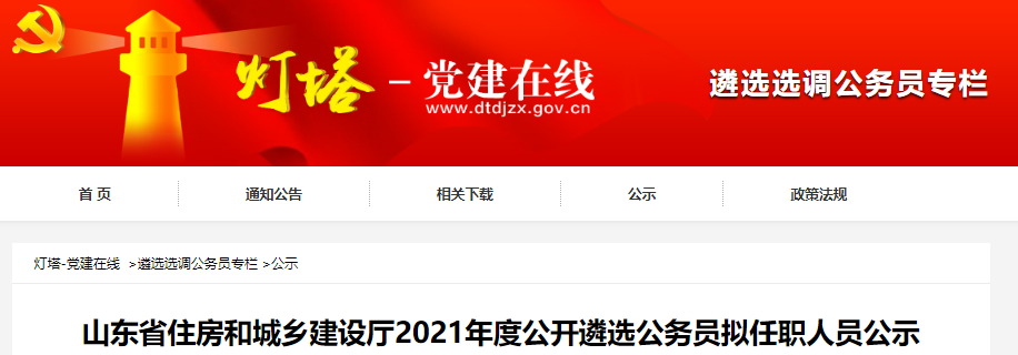 2021年山東省住房和城鄉(xiāng)建設(shè)廳公開遴選公務(wù)員擬任職人員公示已公布,為了方便廣大考生的查閱,下面為您詳細介紹一下本次擬任職人員公示的具體事宜,希望廣大考生及時關(guān)注,如有相關(guān)疑問,請關(guān)注遴選考試頻道為您實時做出的更新。
