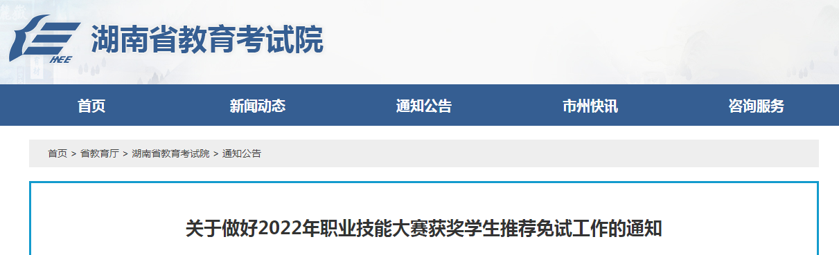 從湖南省教育考試院了解到,關于做好湖南省2022年職業(yè)技能大賽獲獎學生推薦免試工作的通知已發(fā)布,詳細內(nèi)容如下: