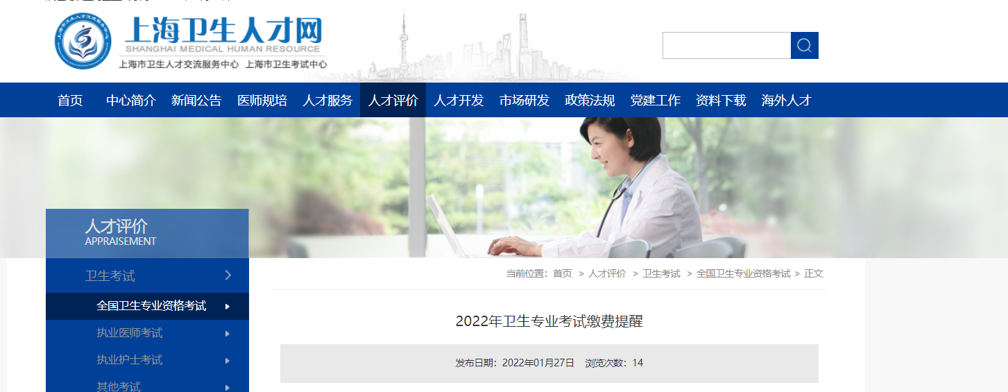 從上海衛(wèi)生人才網(wǎng)獲悉,2022年上海護士資格考試繳費提醒已公布,請相關(guān)人員仔細閱讀,具體詳情如下: