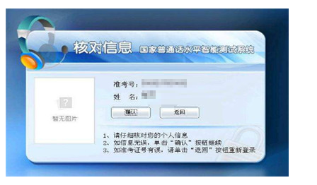 2.信息確認(rèn):考生確認(rèn)準(zhǔn)考證號無誤之后即可點(diǎn)擊“進(jìn)入”按鈕,開始測試。