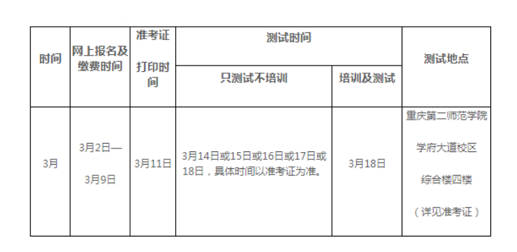 2月:20日(只限重慶大學(xué)校內(nèi)考生報(bào)名)、27日(只限重慶大學(xué)校內(nèi)考生報(bào)名);