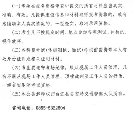 臺(tái)江縣公安局交通警察大隊(duì)計(jì)劃面向社會(huì)公開招考交通警務(wù)輔助人員20名。