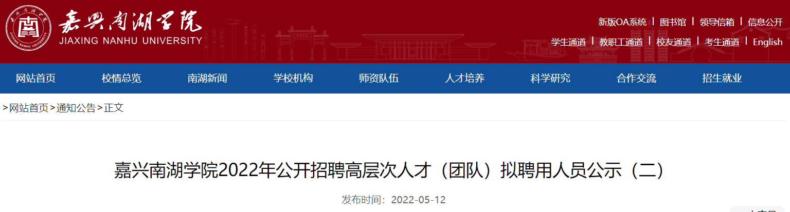 2022年浙江嘉興南湖學(xué)院公開招聘高層次人才(團(tuán)隊(duì))擬聘用人員公示(二)已發(fā)布,公示時(shí)間:2022年5月12日至2022年5月20日,現(xiàn)將原文發(fā)布如下: