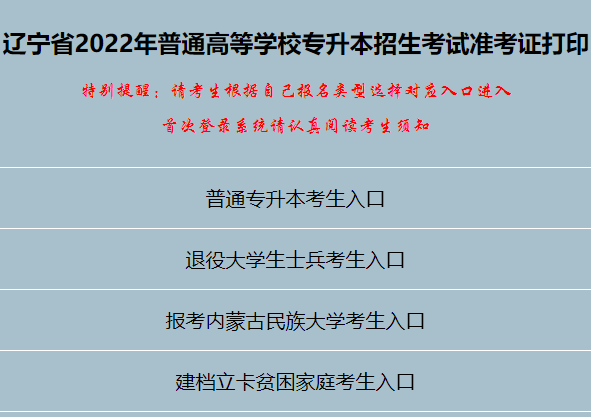2022年遼寧專升本考試準考證打印入口 點擊進入