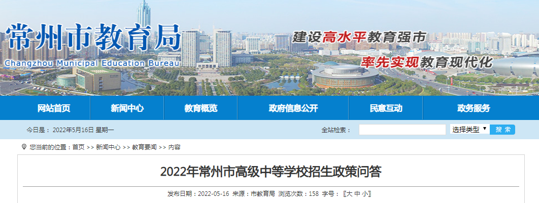 從常州市教育局了解到,2022年江蘇常州市高級(jí)中等學(xué)校招生政策問答已發(fā)布,詳細(xì)內(nèi)容如下: