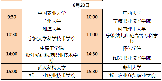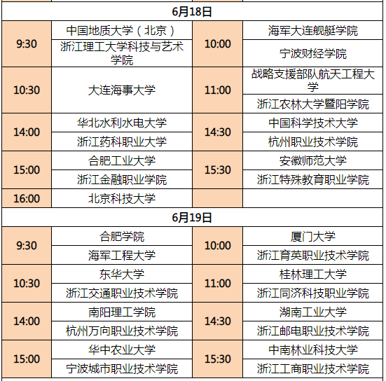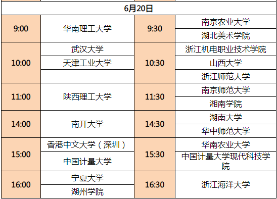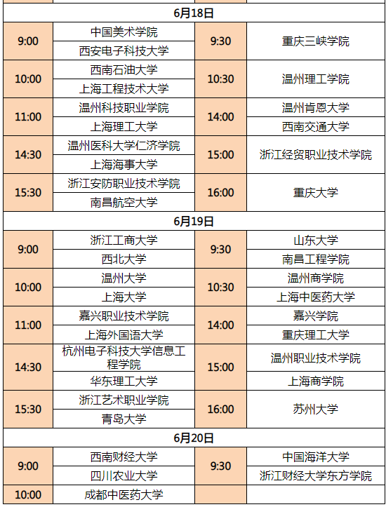 參與高校及具體排期