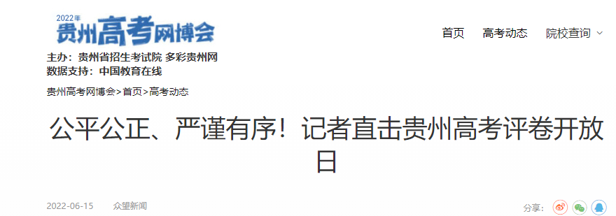 小編根據(jù)貴州省招生考試院發(fā)布“貴州高考評(píng)卷”得知,2022年貴州高考成績(jī)查詢時(shí)間為預(yù)計(jì)6月下旬,6月底開始填報(bào)志愿,7月啟動(dòng)高考錄取工作。