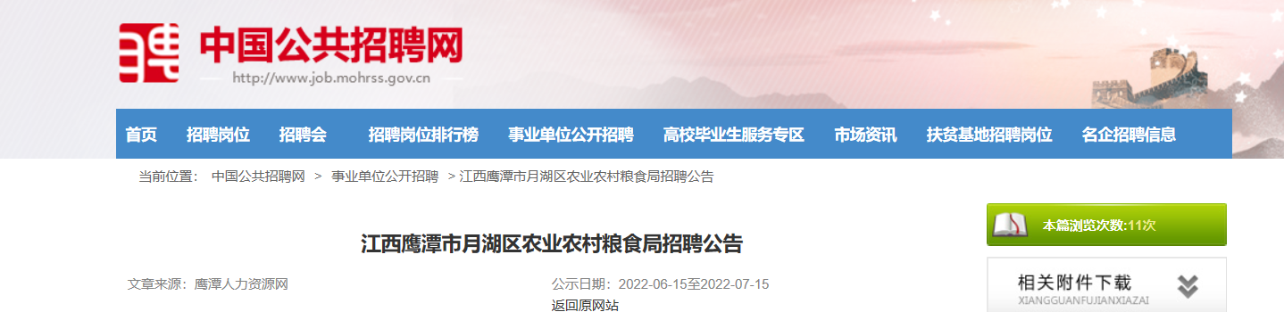 2022江西省鷹潭市月湖區(qū)農(nóng)業(yè)農(nóng)村糧食局招聘公告已發(fā)布。網(wǎng)上報名時間:2022年6月15日至2022年7月15日;現(xiàn)將招聘公告原文發(fā)布如下: