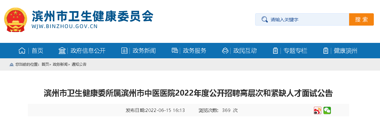 根據(jù)事業(yè)單位人員聘用工作有關(guān)規(guī)定和《濱州市衛(wèi)生健康委員會所屬公立醫(yī)院2022年度公開招聘高層次和緊缺專業(yè)人才簡章》,現(xiàn)就濱州市中醫(yī)醫(yī)院2022年度公開招聘高層次和緊缺人才面試有關(guān)事宜通知如下: