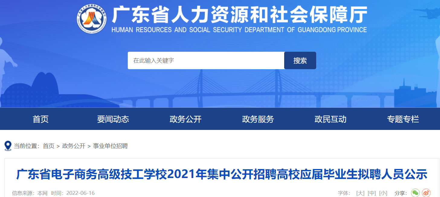 2021年廣東省電子商務高級技工學校集中公開招聘高校應屆畢業(yè)生擬聘人員公示已發(fā)布,公示時間:自發(fā)布之日起7個工作日,現(xiàn)將原文發(fā)布如下: