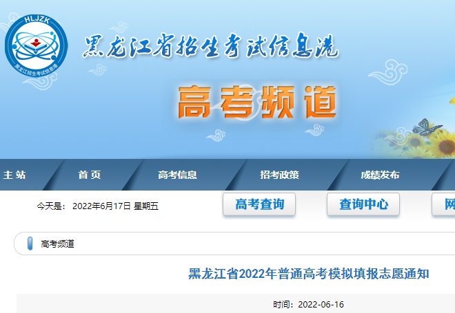 高考頻道從黑龍江招生考試信息港了解到,2022年黑龍江高考模擬填報(bào)志愿通知已公布,時(shí)間定于2022年6月18日-6月20日期間。具體如下: