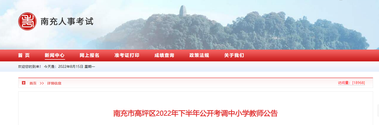 2022年下半年四川南充市高坪區(qū)公開考調(diào)中小學(xué)教師公告已發(fā)布,報名時間:2022年8月27-28日,現(xiàn)將招聘公告原文發(fā)布如下: