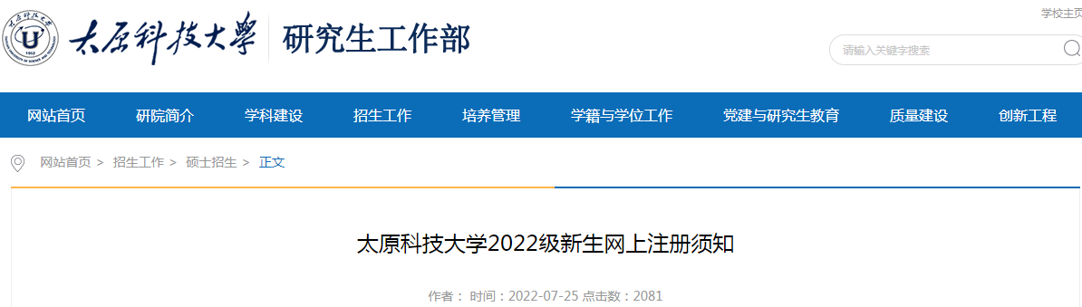 考研頻道從太原科技大學(xué)研究生院了解到,太原科技大學(xué)2022級碩士研究生網(wǎng)上注冊須知已發(fā)布,詳情如下: